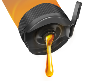 A bisnaga foi projetada para ficar de ponta-cabeça, graças a sua tampa com tecnologia DSC (Drop System Control) que possui controle de vazão e impede o desperdício de mel.